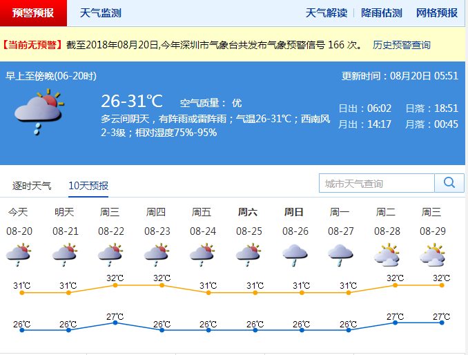 深圳新聞網(wǎng)訊 鵬城昨日又出現(xiàn)局地雷雨,氣溫居高不下,最高氣溫普遍在31℃左右。市氣象臺預(yù)測,未來一周,深圳維持炎熱天氣,仍有局地陣雨,市民應(yīng)注意采取防范措施。