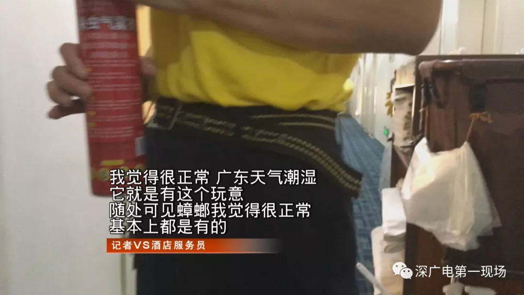 調(diào)查進(jìn)行到這里,記者仍未發(fā)現(xiàn)黃先生遭遇的蟑螂。然而,就在前臺工作人員給記者重新更換的這間雙人標(biāo)間里,一只大蟑螂突然出現(xiàn)。隨后,記者喊來了酒店的工作人員,對方在很短的時間里對這只蟑螂進(jìn)行了“毀尸滅跡”,隨后拿出了一罐滅蟑劑,對出現(xiàn)蟑螂的洗手間進(jìn)行了消殺。