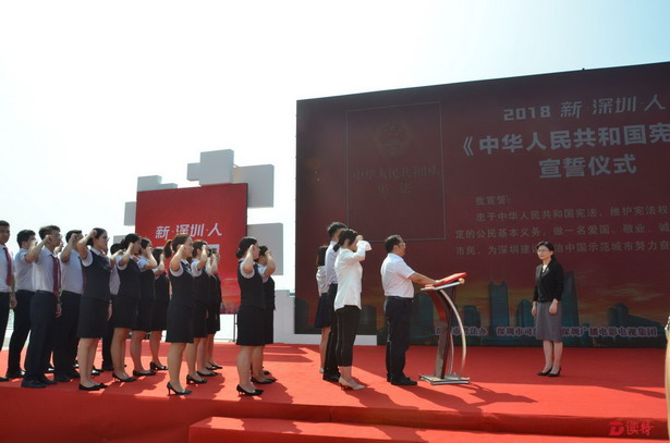 深圳新聞網(wǎng)訊 “我宣誓:忠于中華人民共和國憲法,維護憲法權(quán)威,履行憲法規(guī)定的公民基本義務(wù),做一名愛國、敬業(yè)、誠信、友善的守法市民,為深圳建設(shè)法治中國示范城市努力奮斗!”