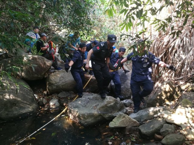 今年4月22日13時40分許,鹽田分局巡警大隊接到指揮中心指令,有人報警稱爬山時在平鹽線鹽田坳一處山谷有一名男子受傷,急需援救。接警后,巡警大隊值班領(lǐng)導(dǎo)立即集結(jié)各巡段警力趕往現(xiàn)場救援。由于山路崎嶇、雨濕路滑,民警們歷經(jīng)半個多小時才到達現(xiàn)場。