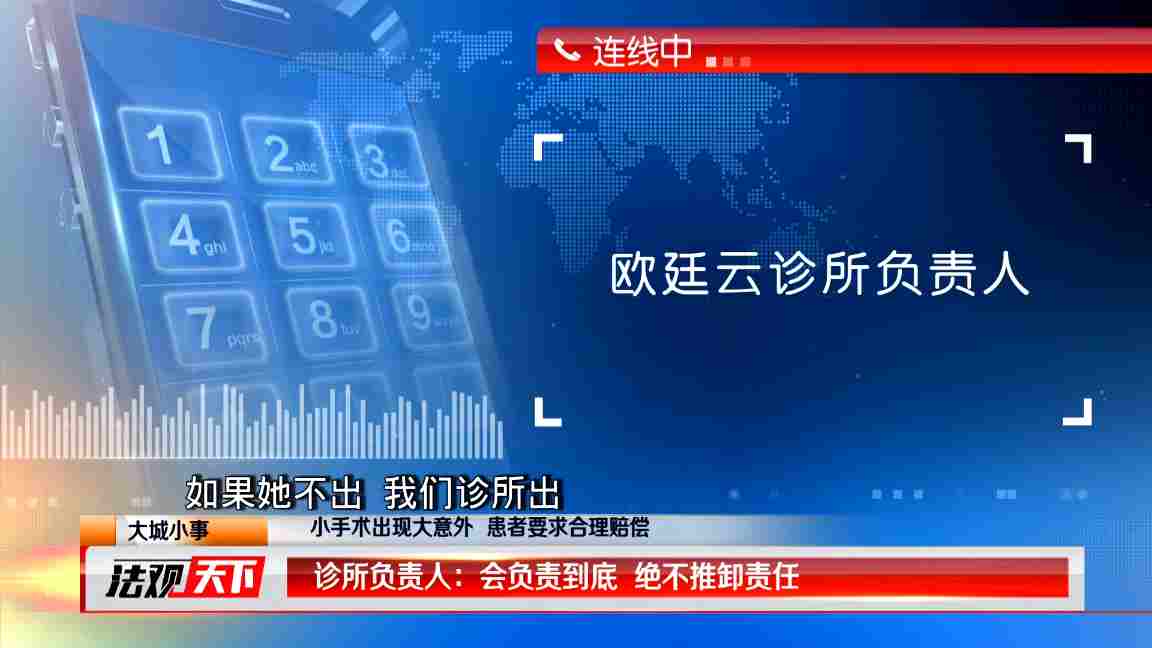 記者試圖向負(fù)責(zé)人索要涉事醫(yī)生的相關(guān)信息,但是遭到拒絕。負(fù)責(zé)人表示,雖然導(dǎo)致周女士出事的是易醫(yī)生,但是手術(shù)是在診所內(nèi)做的,醫(yī)生也是診所從外面請(qǐng)的,所以,診所會(huì)對(duì)此事負(fù)責(zé),絕不推卸責(zé)任。對(duì)于醫(yī)生的手術(shù)問(wèn)題,診所會(huì)向醫(yī)生追償。