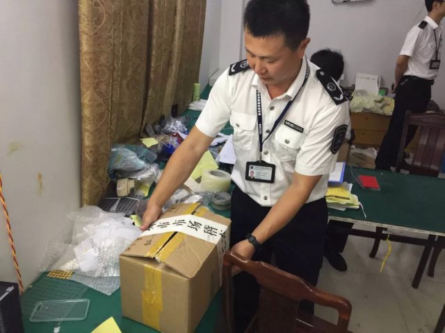 近日,根據(jù)深圳市市場(chǎng)和質(zhì)量監(jiān)管委掃黑除惡辦提供的案件線索,執(zhí)法人員根據(jù)前期摸排,摸清這個(gè)窩點(diǎn)的生產(chǎn)規(guī)律后,9月27日晚采取收網(wǎng)行動(dòng)。晚上9時(shí)該窩點(diǎn)送貨員工準(zhǔn)備將成品出貨,蹲守在附近的執(zhí)法人員迅速行動(dòng),一舉控制住三名員工,查獲標(biāo)有""、"iPhone"注冊(cè)商標(biāo)標(biāo)識(shí)的"蘋果 iPhone8S"手機(jī)成品500余部。另一路執(zhí)法人員同時(shí)到達(dá)生產(chǎn)窩點(diǎn),控制住現(xiàn)場(chǎng)的老板及生產(chǎn)員工。經(jīng)檢查發(fā)現(xiàn),該"地下"生產(chǎn)窩點(diǎn)面積不到50平方米,生產(chǎn)條件非常簡陋,只有幾臺(tái)測(cè)試用的電腦。