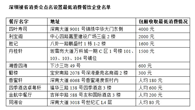 原標題:餐館仍設最低消費深圳10家餐飲企業(yè)被省消委會點名