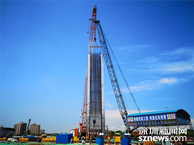 深圳地鐵12號(hào)線海上田園東站正在進(jìn)行地連墻吊裝作業(yè)