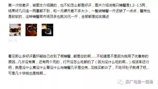 除了短斤缺兩、收到死蟹等,還有消費(fèi)者稱,在電商平臺(tái)上買了大閘蟹禮品券,提貨時(shí)卻遇到賣家的推脫,根本提不到蟹。為此業(yè)內(nèi)人士表示,消費(fèi)者在購(gòu)買大閘蟹禮券時(shí),要時(shí)刻"提防",小心落入不良商家虛假宣傳的套路!