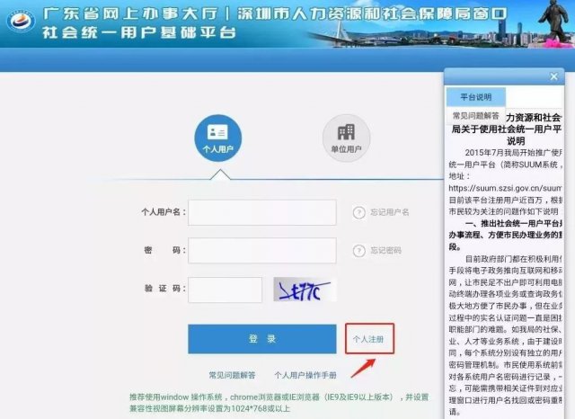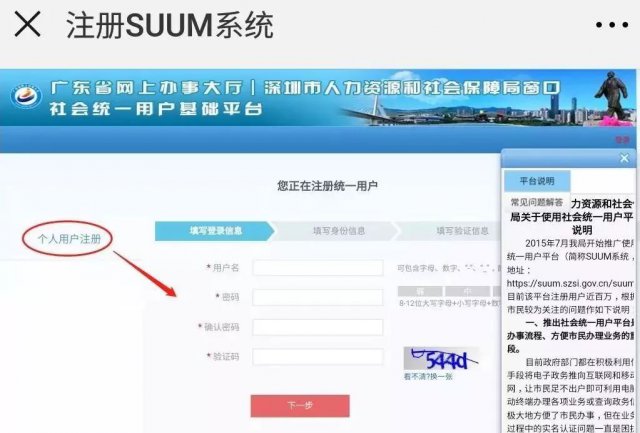 3、若無,點(diǎn)擊"新用戶注冊",進(jìn)入到深圳市人力資源和社會保障局社會統(tǒng)一用戶基礎(chǔ)平臺(https://suum.szsi.gov.cn/suum)。