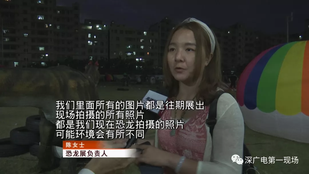 恐龍展負(fù)責(zé)人陳小姐說:“我們里面所有的圖片都是往期展出,可能環(huán)境會有所不同,因為以前我們有在生態(tài)園公園、景區(qū)里面辦,是有一些樹木為背景的,因為我們這里只有一大片草地,可能看起來的話,造景不太美觀。”