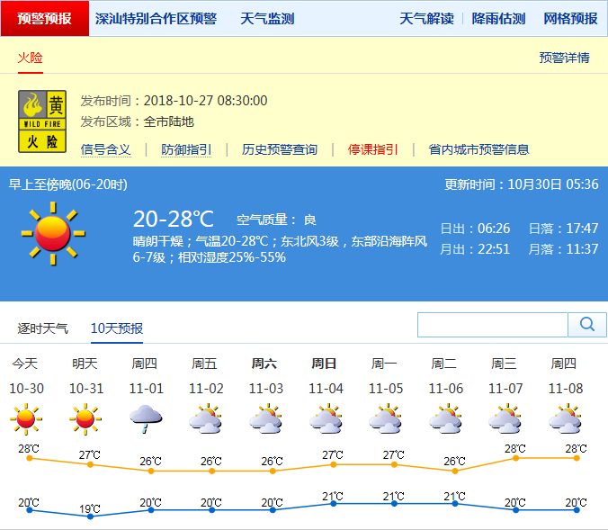 此次臺(tái)風(fēng)給深圳帶來的影響不大,預(yù)計(jì)30日晴朗干燥,氣溫20℃至28℃,東北風(fēng)3級(jí),東部沿海陣風(fēng)6至7級(jí);31日晴天為主,天氣干燥,早晚清涼,晝夜溫差大。
