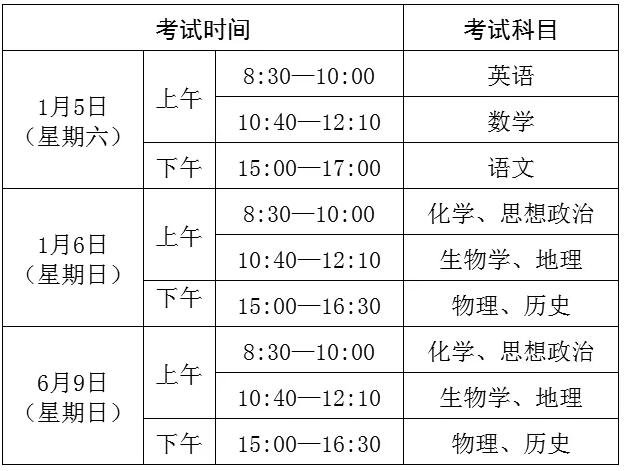 據(jù)了解,1月考試科目為語文、數(shù)學(xué)、英語、思想政治、歷史、地理、物理、化學(xué)和生物學(xué)等9科,6月考試科目為思想政治、歷史、地理、物理、化學(xué)和生物學(xué)等6科。