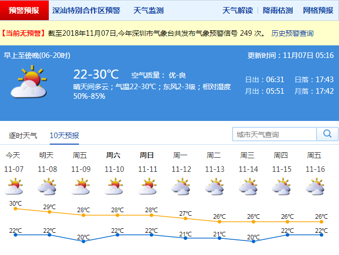市氣象局發(fā)布未來十天天氣預(yù)報(數(shù)據(jù)更新于11月07日05時16分)