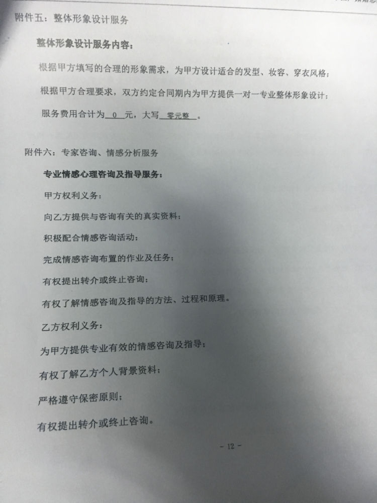 根據(jù)合同,目前服務(wù)時間已經(jīng)終止,但還有心理咨詢服務(wù)及個人宣傳片兩項增值服務(wù)未履行。朱女士對此解釋,這是屬于不收費的增值服務(wù),需要客戶自己提出才會進行?!皼]有人跟我說過這個需要自己提出要求。”劉小姐對該說法并不買賬。