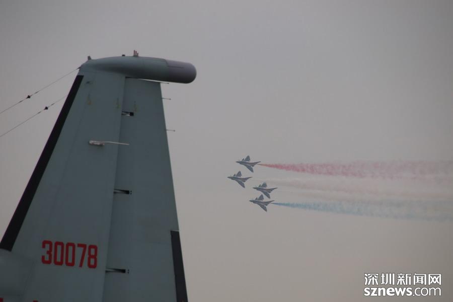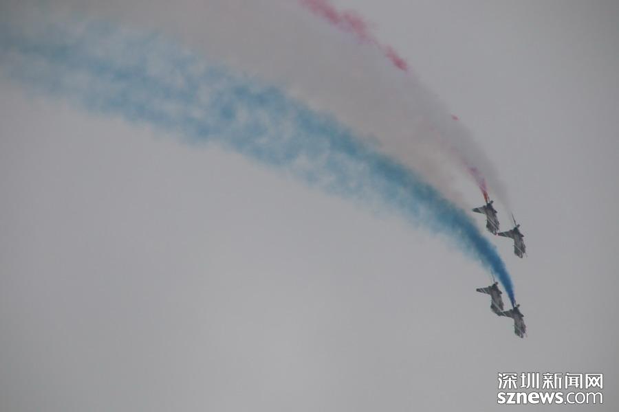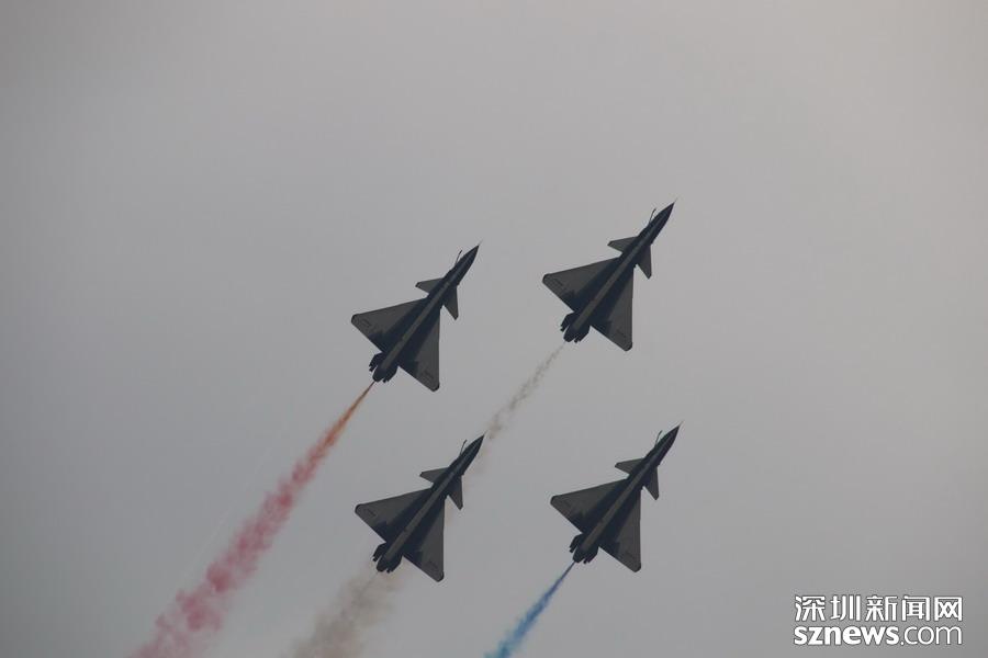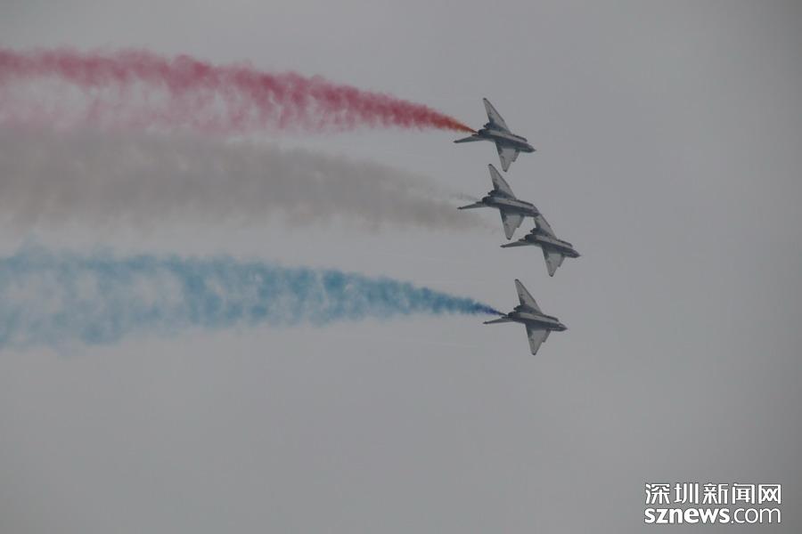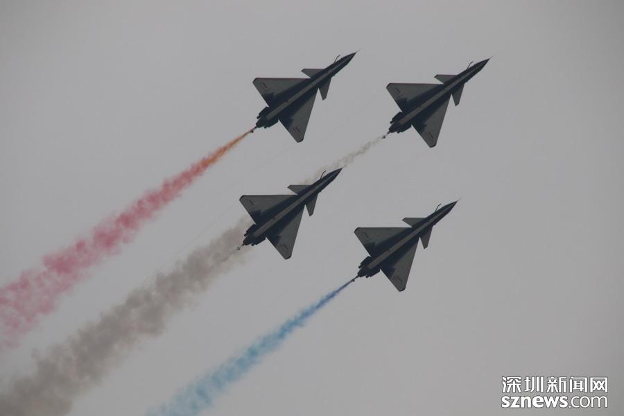 “八一”飛行表演隊(duì)的隊(duì)員則駕駛殲-10,展示了單機(jī)特技表演、六機(jī)編隊(duì)通場……戰(zhàn)機(jī)拉著彩煙,為觀眾帶來精彩的空中芭蕾。