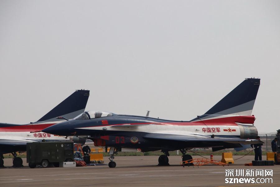 完成飛行表演,在停機(jī)坪上的殲-10。