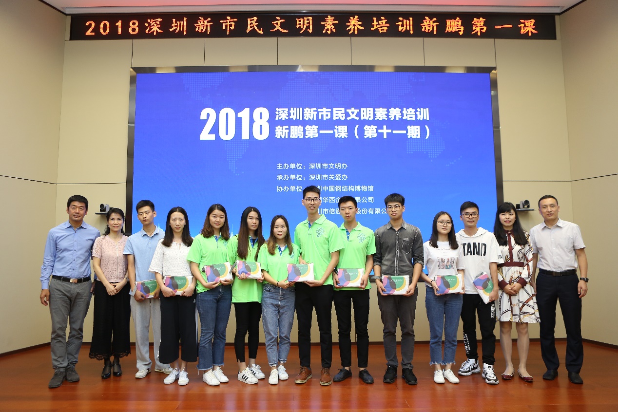 培訓(xùn)課上,上臺(tái)共同宣讀深圳新市民文明公約的環(huán)節(jié)讓十位新市民神情嚴(yán)肅而莊重,他們承諾將從自身做起,履行深圳市民應(yīng)盡的職責(zé)與義務(wù),赴深圳文明之約,成為文明深圳的踐行者與傳播者。深圳市關(guān)愛辦副主任華榮、中國(guó)著名登山探險(xiǎn)家張梁、中國(guó)華西企業(yè)有限公司黨群工作部部長(zhǎng)易佳、深圳中國(guó)鋼結(jié)構(gòu)博物館館長(zhǎng)張利峰為新市民代表送上一份詳盡的“深圳說明書”——新版深圳福袋暨新版市民生活指南。