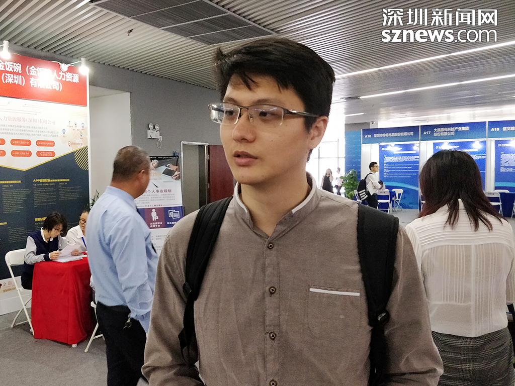 現(xiàn)場應(yīng)聘的劉先生已有一年的工作經(jīng)驗(yàn),此次高端人才招聘會(huì)的信息是通過深圳市人力資源社會(huì)保障局的微信公眾號得知,故來到現(xiàn)場希望尋得一個(gè)對口的崗位。
