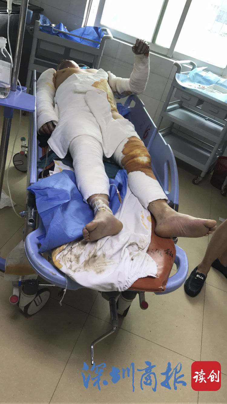 附近鄰居聞訊趕來,拿起滅火器幫忙滅火?!八麄儍蓚€人渾身都是火,是爬著出來的。”高朝雄的妻子洪女士至今不敢相信自己看到了這突如其來的一幕?;馂陌l(fā)生后,兩人被送往醫(yī)院。經(jīng)醫(yī)生診斷,兩個人身上多處被熱油火焰燒傷,燒傷面積達50%,高朝雄呼吸道和雙眼均被燒傷。高朝雄表弟肖輝廷告訴記者,目前兩個人都在深圳市第二人民醫(yī)院就醫(yī)治,仍沒有脫離危險。