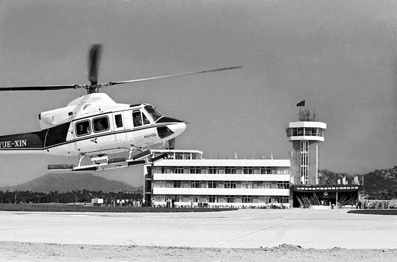 1983年11月12日,位于南頭的直升飛機場投入使用,為南海油田服務(wù)的中國海洋直升飛機專業(yè)公司舉行開業(yè)典禮和首航儀式。 劉廷芳 攝