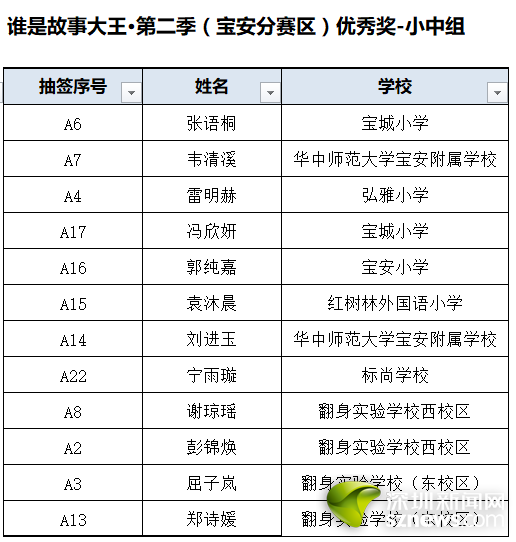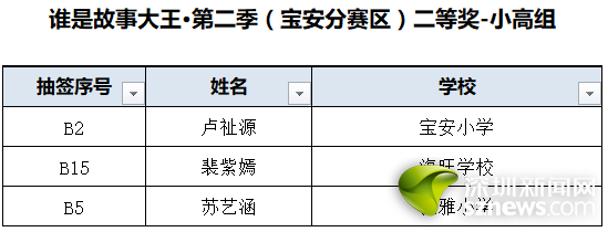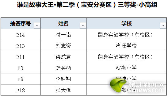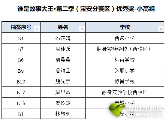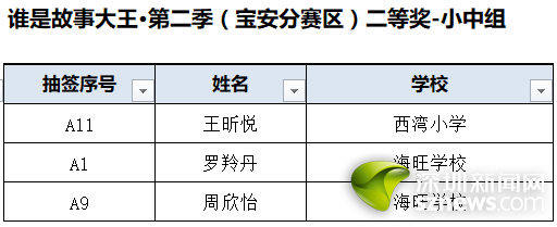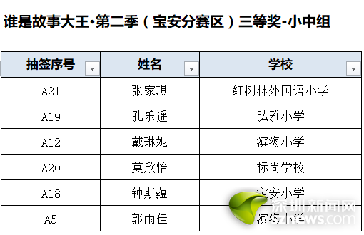 誰是故事大王·第二季(寶安分賽區(qū))獲獎(jiǎng)名單: