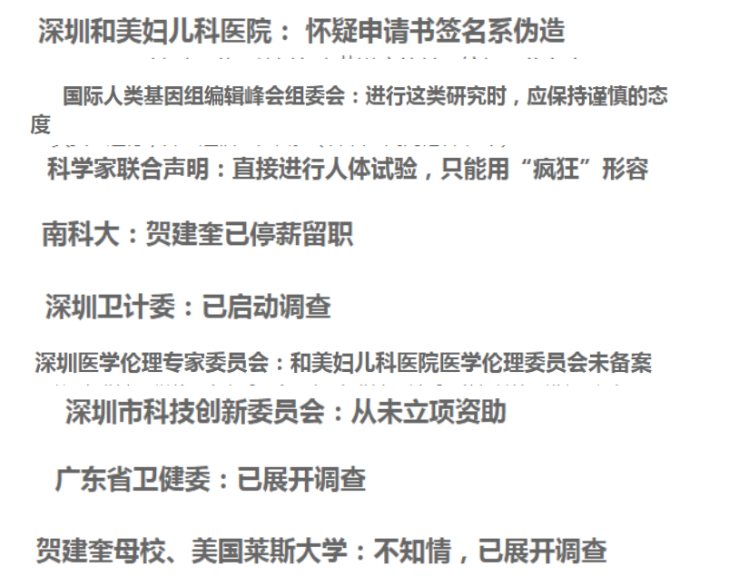 此事件涉及的多個部門也撇清了與賀建奎的關(guān)系
