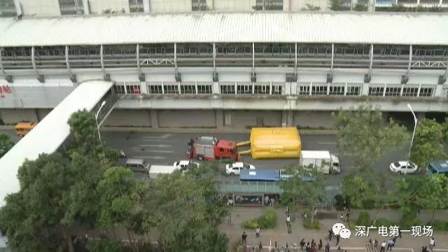 為了安全起見,消防人員在車站下方的龍崗大道上,設(shè)置了安全氣墊。