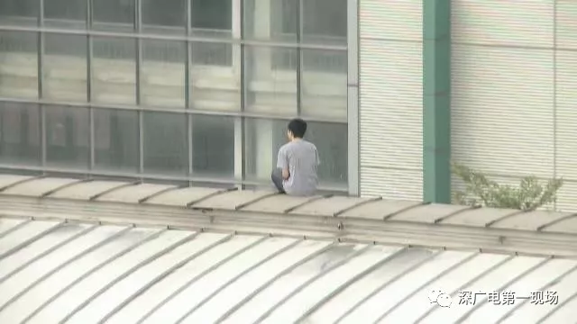 發(fā)現(xiàn)男子的進(jìn)入軌行區(qū)后,地鐵工作人員馬上聯(lián)系警方,隨后警方和消防人員也趕到現(xiàn)場(chǎng),這時(shí)這名男子已經(jīng)坐在了荷坳站的頂棚上。
