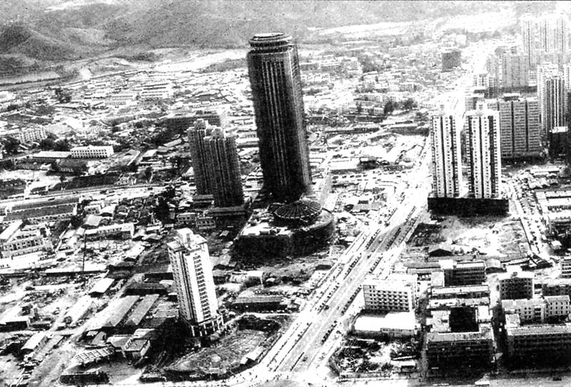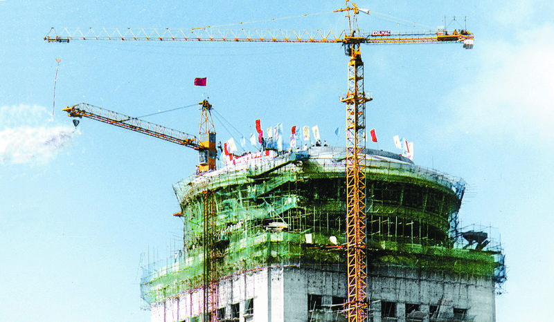當(dāng)年施工中的國貿(mào)大廈。