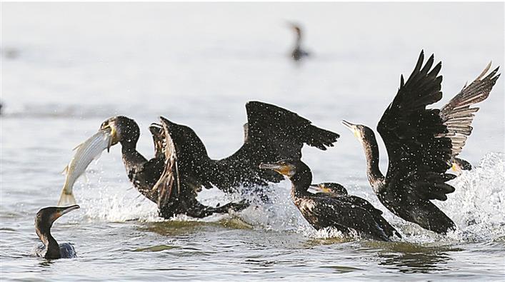 日前,數(shù)萬只普通鸕鶿來到深圳灣捕食。據(jù)深圳市觀鳥協(xié)會田老師介紹,每到冬季普通鸕鶿從北方來到深圳過冬,來年春季返回北方繁衍生息。