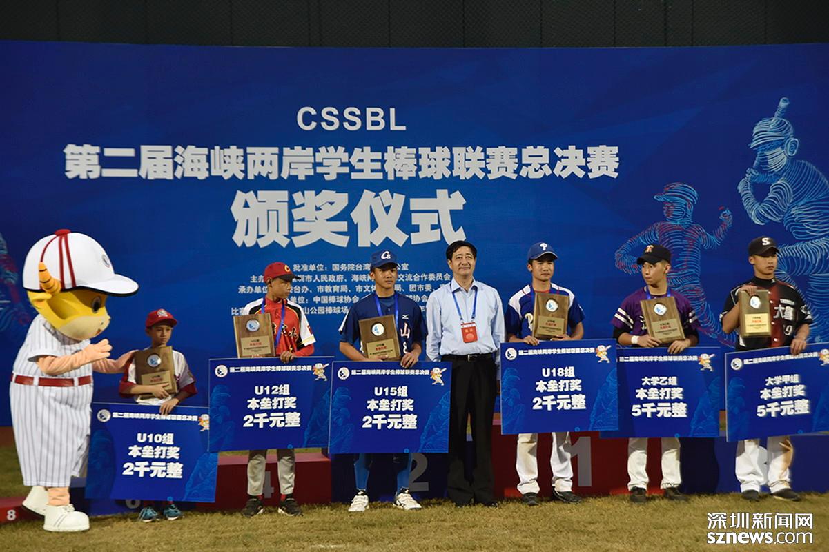 現(xiàn)場,中國棒球協(xié)會司庫田原,海峽兩岸棒球交流合作委員會主席李敏寬等頒獎嘉賓為各組別頒發(fā)團隊獎以及5個組別的優(yōu)秀教練員、最有價值運動員、最佳投手獎、本壘打獎、最佳打擊獎等個人獎項。