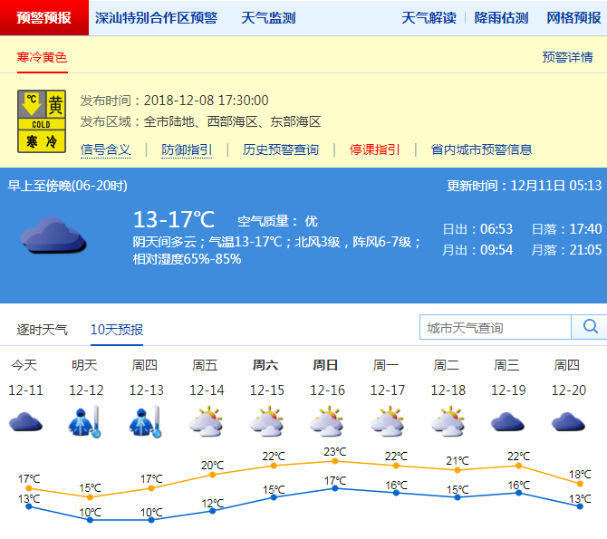 市氣象局發(fā)布未來十天天氣預報(數(shù)據更新于12月11日5時13分)