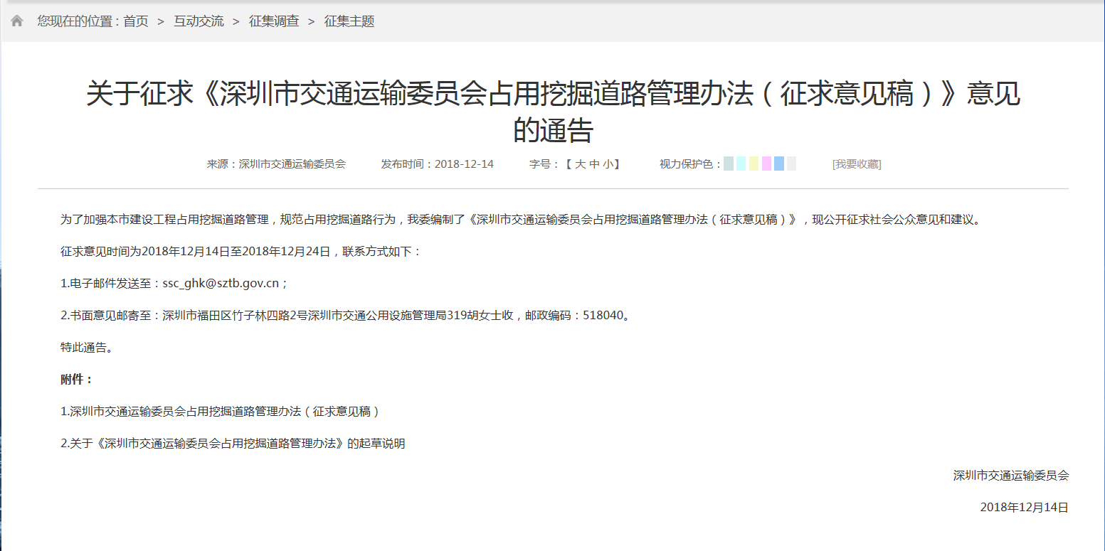 好在,最近《深圳市交通運輸委員會占用挖掘道路管理辦法(征求意見稿)》