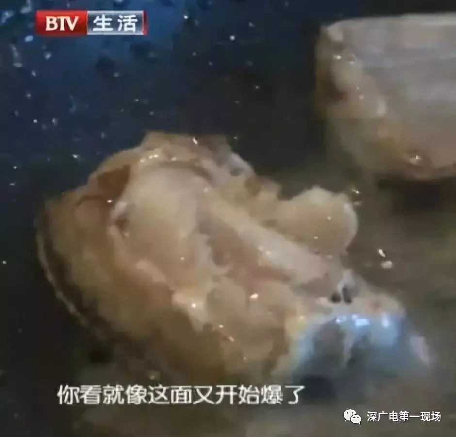 實(shí)驗(yàn)結(jié)果顯示,未浸泡福爾馬林的帶魚(yú),經(jīng)過(guò)高溫油炸一切正常,并未產(chǎn)生任何爆裂“開(kāi)花”的情況。然而,浸泡了福爾馬林的帶魚(yú),在下鍋后不久,就爆裂“開(kāi)花”。