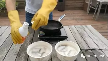 第二步,在其中一份帶魚(yú)中,倒入少量福爾馬林,并浸泡5分鐘左右;