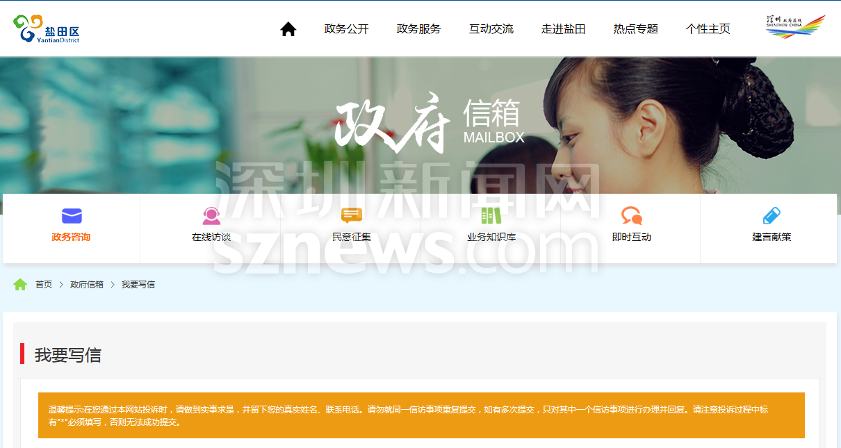 記者通過(guò)鹽田政府在線網(wǎng)站的信訪渠道寫(xiě)信反饋情況,顯示提交成功