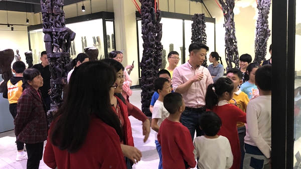 也許是被熱情的笑容和鼓舞所感染,天真活潑的小朋友們一到現(xiàn)場便與非洲大哥哥大姐姐們迅速的打成一片,毫無距離感。在非洲哥哥姐姐們的鼓聲引領(lǐng)下,同學(xué)們首先來到非洲文化博物館,由于大家都是第一次接觸非洲藝術(shù)品,哇哇哇的贊嘆聲此起彼伏,博物館工作人員瞬間被大家緊緊包圍,對各種藝術(shù)品提出了無數(shù)個五花八門的問題,真正成了“十萬個為什么”“案發(fā)現(xiàn)場”?!榜R賽人為什么住牛糞房子???”“木頭為什么是黑色的啊”“坐了酋長椅是不是就可以做酋長了?”……由于同學(xué)們第一次這么近距離接觸非洲文化,實在是太好奇太熱情,與各種藝術(shù)品親密接觸拍照、坐酋長椅體驗“做酋長”的感覺、甚至工作人員也“網(wǎng)開一面”讓大家騎在大象和獅子木雕上盡情玩耍,導(dǎo)致原本計劃半小時的參觀時間足足一個半小時才結(jié)束。
