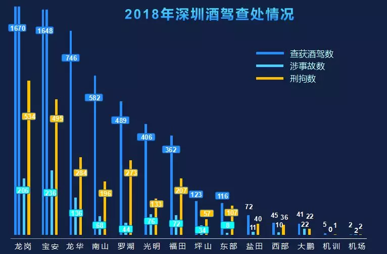 2018年深圳交警共受理危險駕駛案6687宗,立案6307宗6313人,處置醉酒駕駛6313人,全部采取了刑事強制措施。涉及酒駕事故925宗,占總數(shù)的14.65%。此外,2018年辦理阻礙執(zhí)法案85宗89人,行政拘留74人,教育警告15人;辦理妨害公務案7宗,刑事拘留7人。