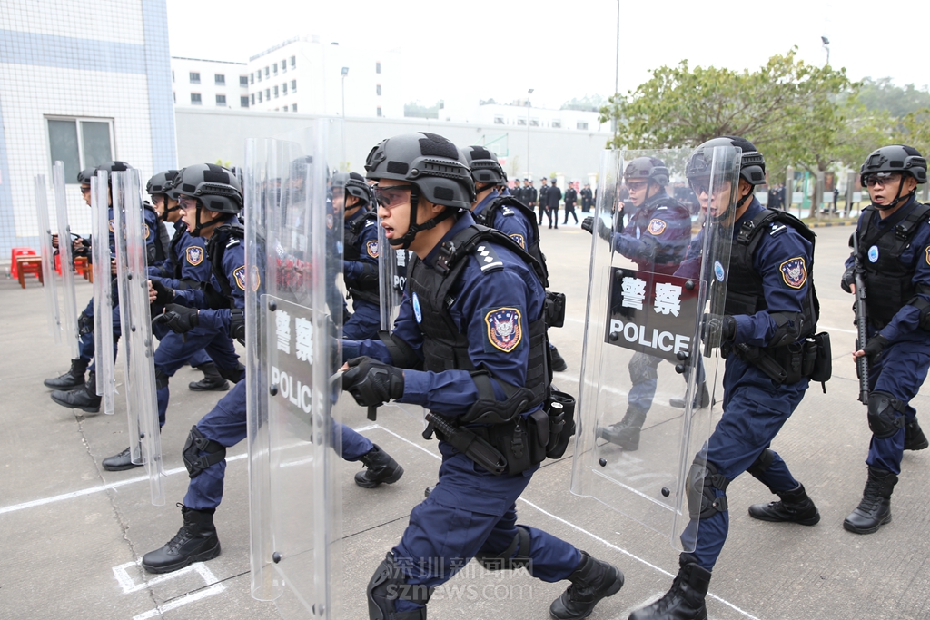 隊列會操步履整齊劃一,動作規(guī)范有力,擒敵拳演練虎虎生威,遒勁剛猛,展現(xiàn)了深圳監(jiān)獄警察訓(xùn)練有素、團(tuán)結(jié)一致的團(tuán)隊風(fēng)采。特警隊員壓軸表演的警棍盾牌操,動作迅速,合作默契,彰顯深圳監(jiān)獄警察過硬的專業(yè)本領(lǐng)和團(tuán)結(jié)協(xié)作的團(tuán)隊精神。值得一提的是,在9個隊列中,有1個隊列全部由女警組成,她們聲音洪亮,英姿颯爽,巾幗不讓須眉,是深圳監(jiān)獄警察團(tuán)隊中一道亮麗的風(fēng)景。