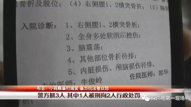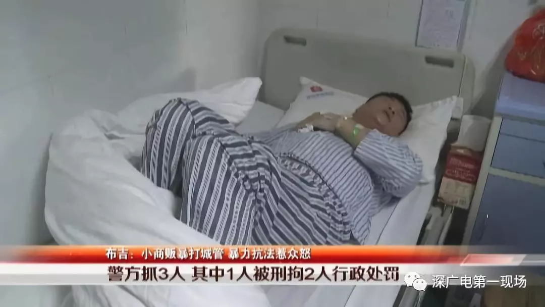記者從中海醫(yī)院了解到,被打城管隊員徐濤右側腰兩橫突骨折。龍崗警方發(fā)通報,鑒定徐濤為輕傷,以涉嫌故意傷害罪,對光頭男子趙某青采取刑事強制措施,同時對其妻李某玉和女老鄉(xiāng)王某,以毆打他人處以行政處罰。