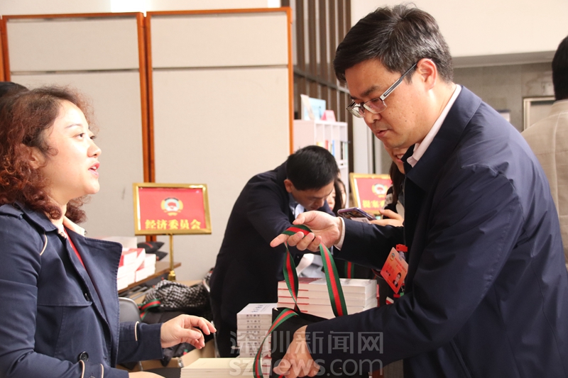政協(xié)委員張小梨領(lǐng)取會議資料