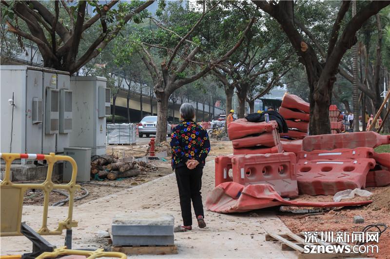 福田僑香路是人大代表楊勤調研的第二個點,從現(xiàn)場可以看到,目前僑香路人行道正在進行施工,不少大型機械正在作業(yè),發(fā)出陣陣轟鳴聲,來往行人只能繞道。