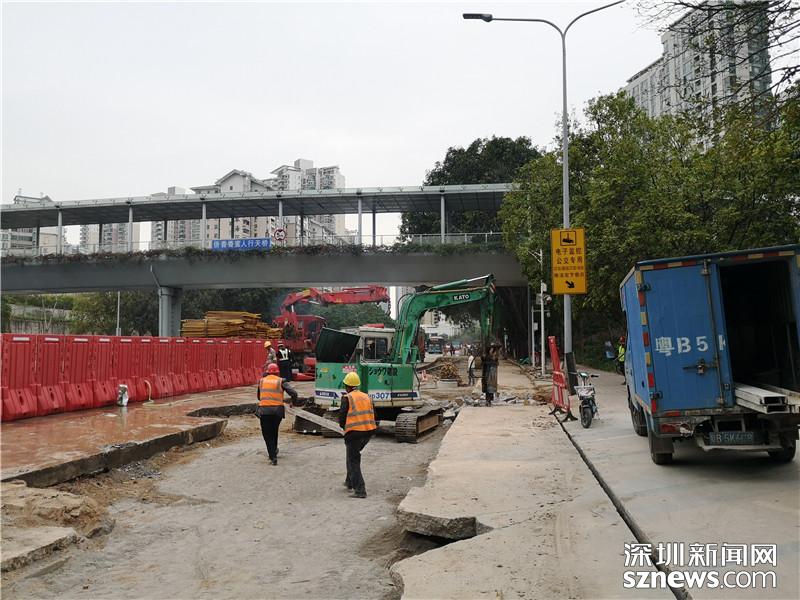 福田僑香路是人大代表楊勤調研的第二個點,從現(xiàn)場可以看到,目前僑香路人行道正在進行施工,不少大型機械正在作業(yè),發(fā)出陣陣轟鳴聲,來往行人只能繞道。