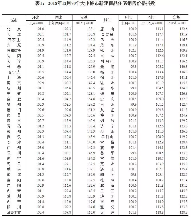 16日,國(guó)家統(tǒng)計(jì)局公布的“2018年12月份70個(gè)大中城市商品住宅銷(xiāo)售價(jià)格變動(dòng)情況”顯示,雖然一線城市新房?jī)r(jià)格年底有所上漲,但二三線城市房?jī)r(jià)保持穩(wěn)定。