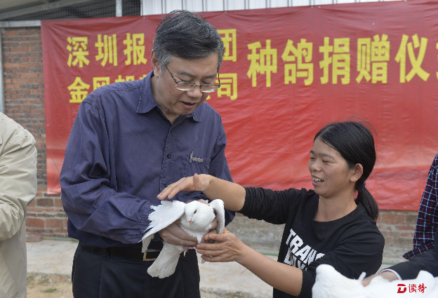根據(jù)報業(yè)集團“因戶制宜一戶一策”“一個黨支部結(jié)對一戶貧困戶”的安排,鐘仿明選擇養(yǎng)鴿脫貧,兩年多來,集團金風(fēng)帆物業(yè)公司共計為他送來四批480對種鴿,還請來深圳光明農(nóng)場的技術(shù)員,對他進行技術(shù)培訓(xùn)?!?80對種鴿全部成活!”1月20日下午,看到親自來送種鴿的陳寅等報業(yè)集團領(lǐng)導(dǎo),鐘仿明拿出一面錦旗,非常激動地說:“感謝黨的好政策,感謝深圳報業(yè)集團的真心幫扶!”