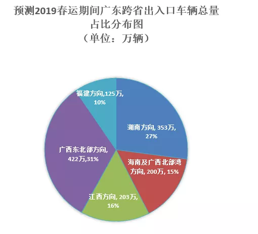預(yù)測(cè)2019年春運(yùn)期間省界站出入口總車流量為1302萬輛,同比增長約7%。