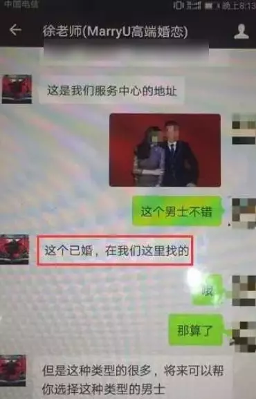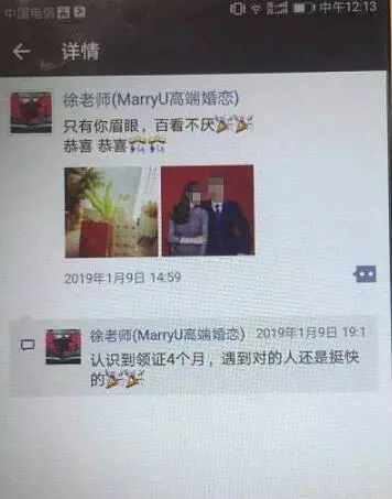 不僅如此,當(dāng)朋友拿著陳先生的結(jié)婚照,詢問這名工作人員時(shí),工作人員立馬表示,陳先生是在他們婚戀公司找到的對象。