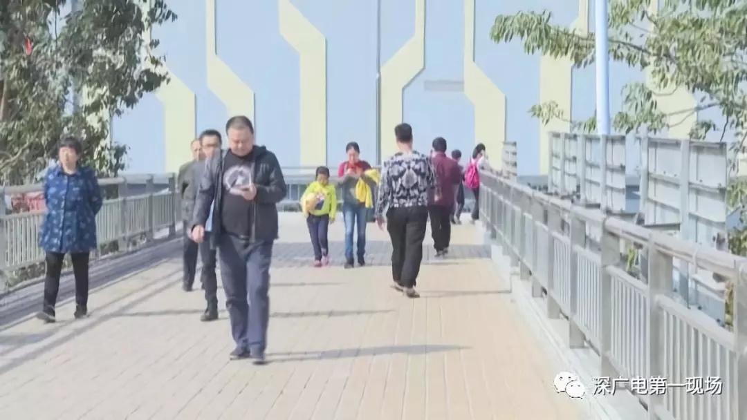 寶安的一名環(huán)衛(wèi)工人在人行天橋上