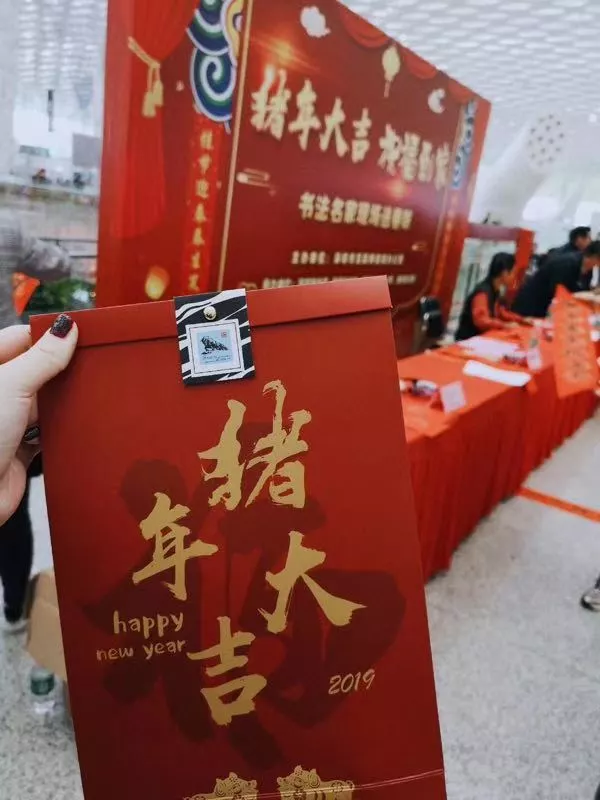 現(xiàn)場(chǎng)寫春聯(lián)的活動(dòng)時(shí)很心動(dòng),