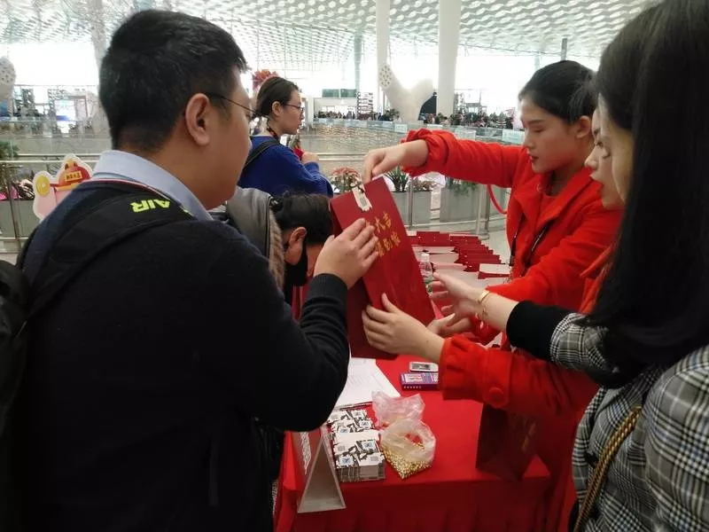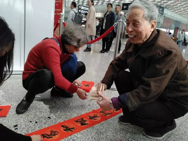 來(lái)領(lǐng)春聯(lián)的旅客里有國(guó)內(nèi)輾轉(zhuǎn)回老家的,有回國(guó)過(guò)年的,也有特地去國(guó)外過(guò)年的。來(lái)自江西婺源的曾老先生11點(diǎn)多的飛機(jī)飛往馬來(lái)西亞,今年他和老伴、孩子將在馬來(lái)西亞過(guò)年。他選的這兩幅春聯(lián)是他對(duì)新年的希望與祝福,將帶到馬來(lái)西亞貼起來(lái),給新年增添年味兒。“我還可以送給朋友,這是最好的禮物,他們一定會(huì)喜歡的。”曾先生高興地說(shuō)。