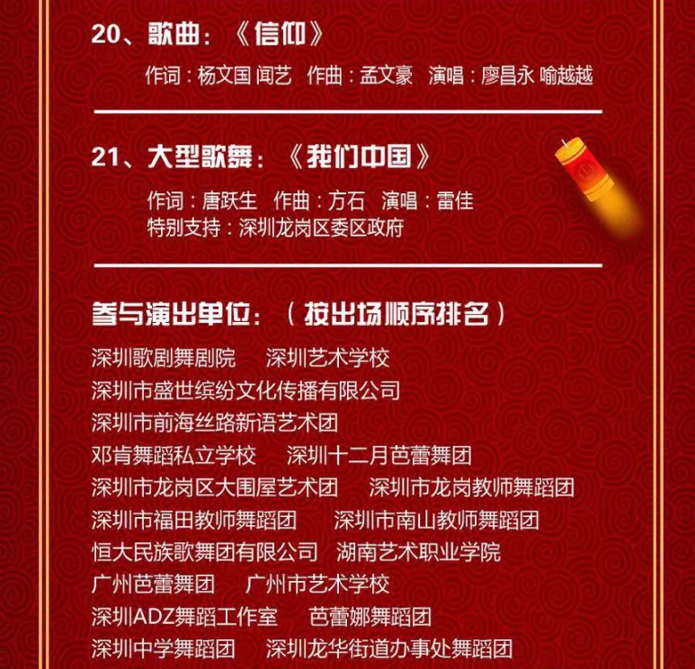 “擁抱春天——2019中央廣播電視總臺(tái)春節(jié)聯(lián)歡晚會(huì)深圳分會(huì)場(chǎng)節(jié)目展播暨深圳春節(jié)聯(lián)歡晚會(huì)”(以下簡(jiǎn)稱“深圳春晚”)將于明晚21:00在央視綜藝頻道和深圳衛(wèi)視同步播出。