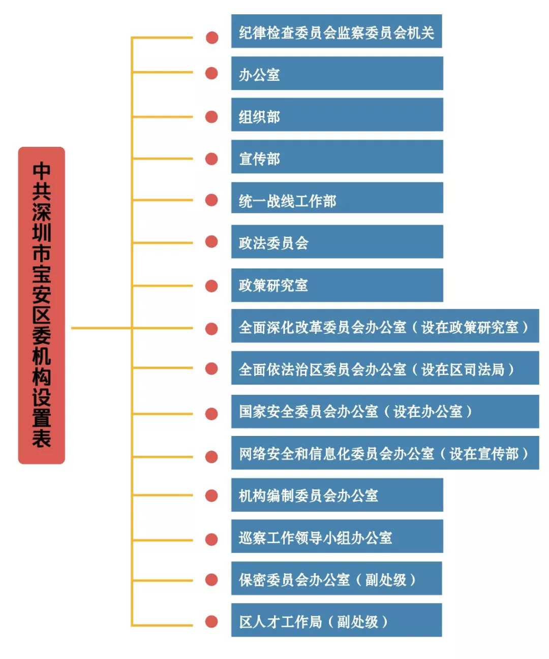 說(shuō)明:深圳市寶安區(qū)委設(shè)置紀(jì)檢監(jiān)察機(jī)關(guān)1個(gè),計(jì)入機(jī)構(gòu)限額的工作機(jī)關(guān)10個(gè)(設(shè)在相關(guān)部門(mén)的區(qū)委議事協(xié)調(diào)機(jī)構(gòu)的辦事機(jī)構(gòu)不計(jì)入機(jī)構(gòu)限額)。其中,紀(jì)律檢查委員會(huì)與監(jiān)察委員會(huì)合署辦公,實(shí)行一套工作機(jī)構(gòu)、兩個(gè)機(jī)關(guān)名稱(chēng);辦公室掛區(qū)外事局、區(qū)檔案局牌子;組織部掛區(qū)直屬機(jī)關(guān)工作委員會(huì)、區(qū)非公有制經(jīng)濟(jì)組織和社會(huì)組織工作委員會(huì)、區(qū)公務(wù)員局牌子;宣傳部掛區(qū)精神文明建設(shè)委員會(huì)辦公室、區(qū)新聞出版局、區(qū)互聯(lián)網(wǎng)信息辦公室牌子;統(tǒng)一戰(zhàn)線工作部掛區(qū)民族宗教事務(wù)局、區(qū)臺(tái)港澳事務(wù)局、區(qū)僑務(wù)局牌子;保密委員會(huì)辦公室掛機(jī)要局、區(qū)國(guó)家保密局、區(qū)密碼管理局牌子。