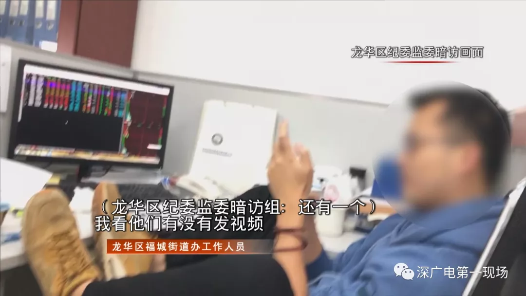 但暗訪組在調(diào)查中發(fā)現(xiàn),福城街道建筑工程事務(wù)中心有一名工作人員上班時(shí)間把腿翹到桌子上玩手機(jī)、看股票。